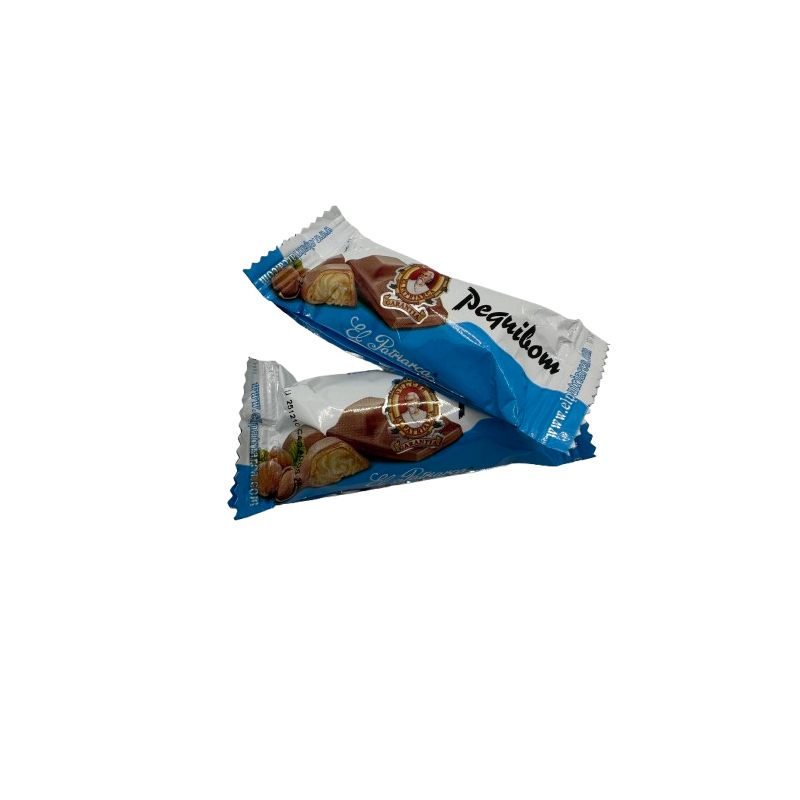 El Pequibom es un dulce crujiente hecho con oblea rellena de crema de avellana y recubierta de chocolate (de distintos tipos según la versión). Tiene un perfil similar a un bombón grande o a un barquillo con sabor intenso a avellana y chocolate.